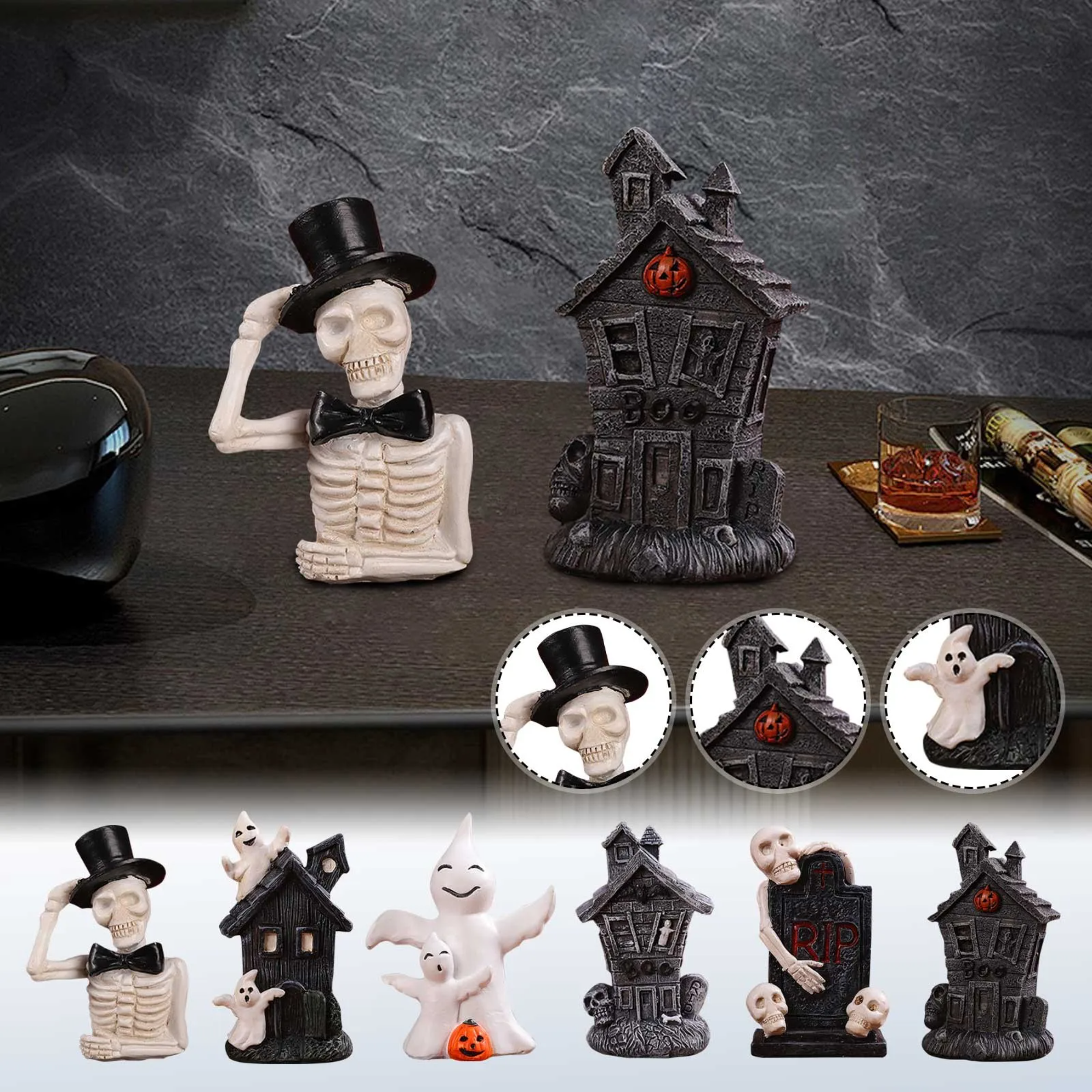 0709BA 2024 New Halloween Ghost Skulls Pumpkins Resin Ornament Halloween Home Desk Decorations