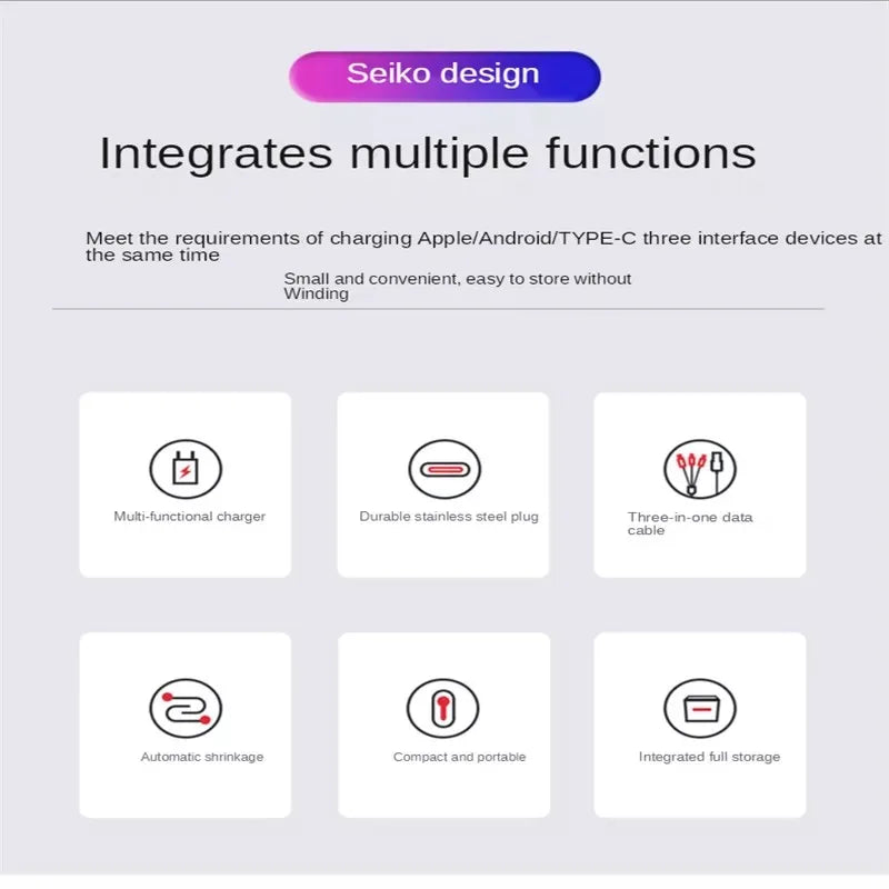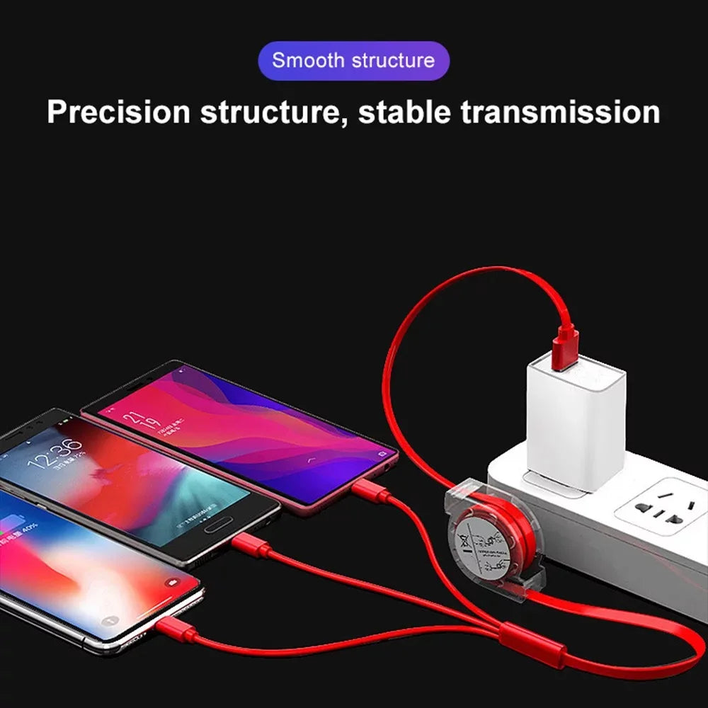 The 3 in 1 Retractable Data USB Cable for iPhone Charger is a compact and versatile charging solution designed to simplify your tech life. This cable features a retractable design, making it easy to carry and store, while the 3-in-1 functionality provides connectors for iPhone, Micro USB, and Type C devices. Ideal for those on the go, this cable ensures fast charging and efficient data transfer, making it an essential accessory for your daily needs.