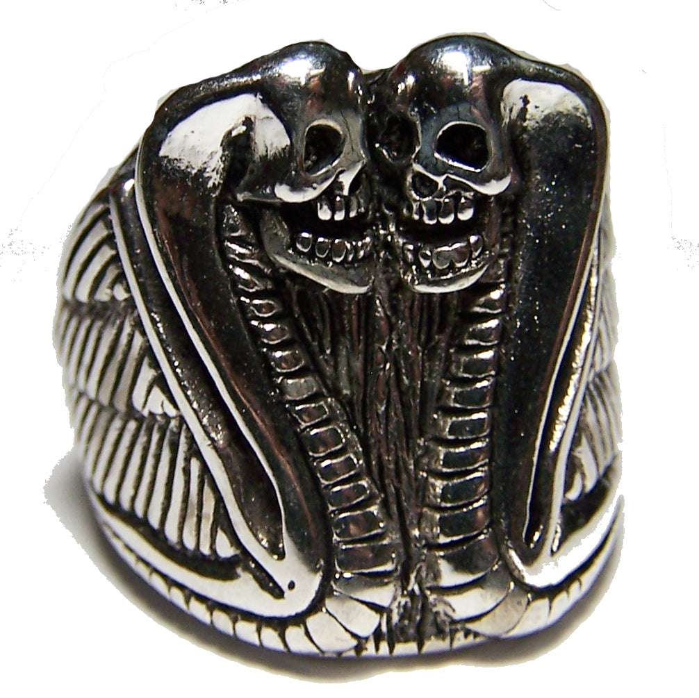 Home Wholesale DOUBLE HEADED COBRA SNAKE BIKER RING (Sold by the piece)