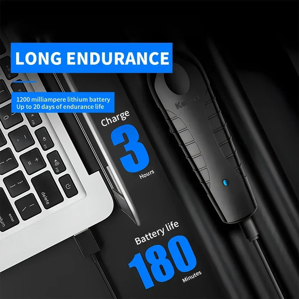 Achieve a sharp, professional look with the Kemei 2299 Cordless Hair Trimmer. Engineered for barbers and at-home grooming enthusiasts alike, this powerful yet lightweight trimmer delivers precision and performance in every cut. The cordless design ensures flexibility, while the high-performance motor and stainless steel blades provide clean, precise trimming for all hair types. Whether you’re shaping, detailing, or trimming, the Kemei 2299 is the perfect tool for any grooming routine.