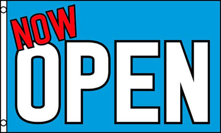 Wholesale NOW OPEN BLUE 3 X 5 FLAG ( sold by the piece )