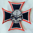 Wholesale SKULL IRON CROSS 3 INCH PATCH (Sold by the piece OR dozen) CLOSEOUT AS LOW AS 75 CENTS EA