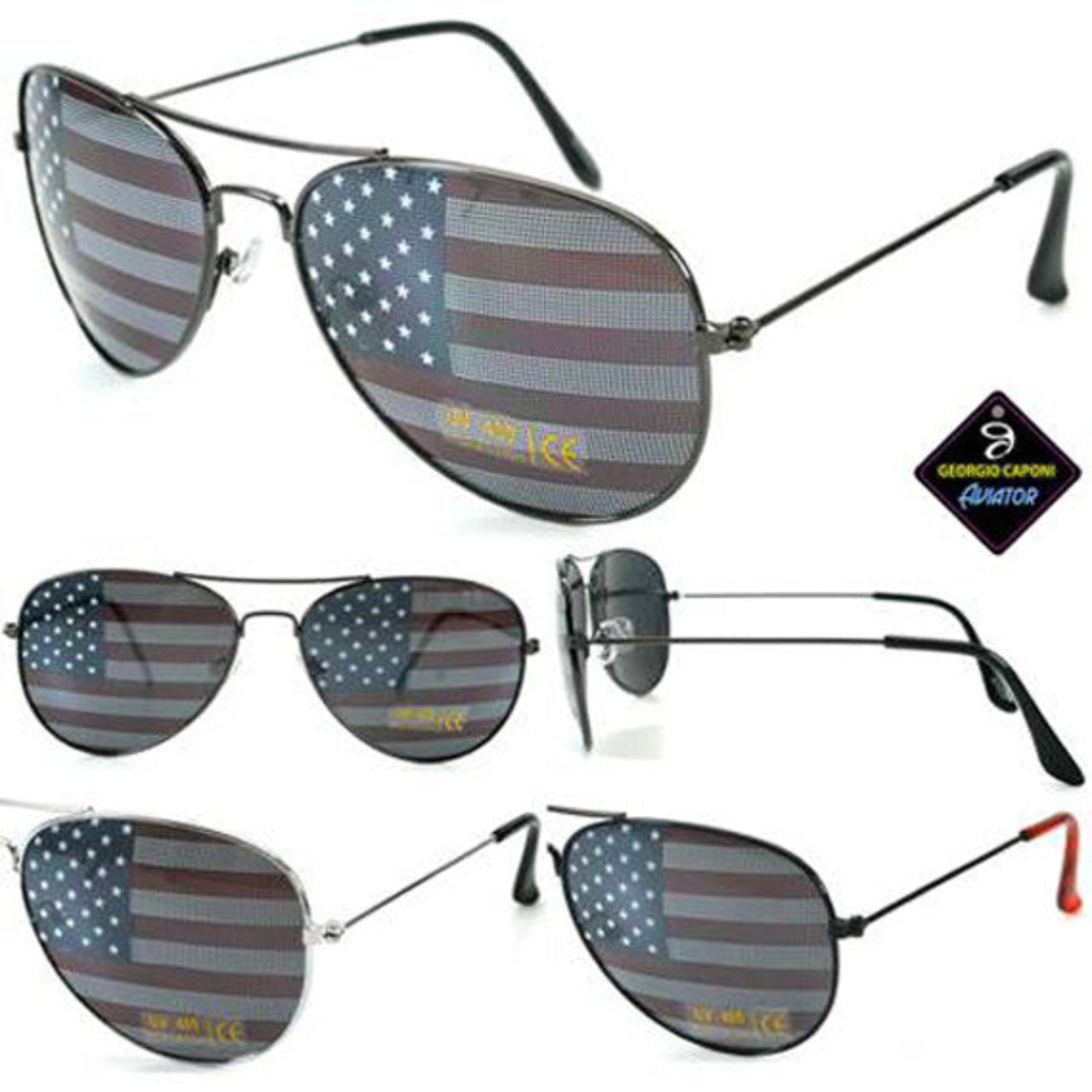 We understand the importance of protecting your eyes while expressing your patriotic spirit. That's why we offer these aviator sunglasses, featuring the American flag design on the lenses, making them a fashionable choice for any patriotic occasion.